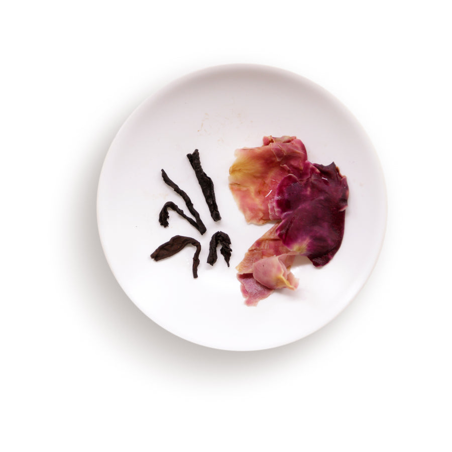 The infusion is rich yet composed. The fermented depth of the tea is softened by subtle rosy notes, creating a balanced cup that feels warm, grounding, and gently expressive. Neither element dominates: the rose acts as a nuance, enhancing clarity and length without masking the character of aged Pu’erh.