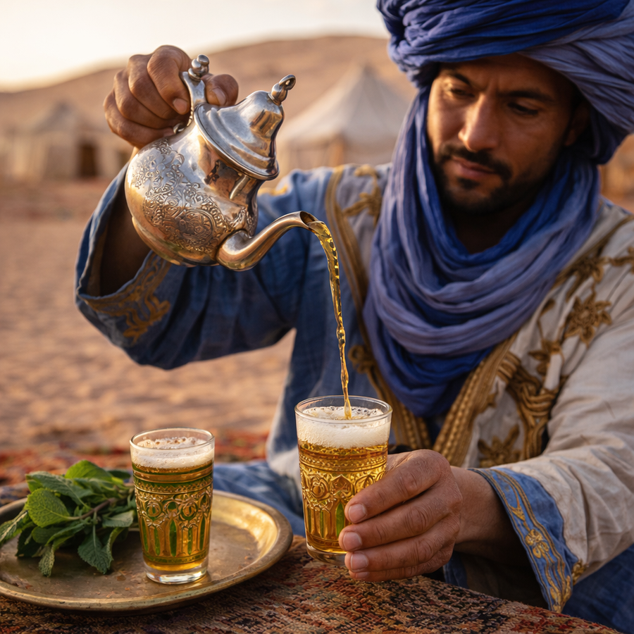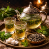 Blend of Chinese green tea and peppermint leaves (Mentha Piperita), this tea is an homage to the traditional Moroccan tea. The green tea is from Zhejiang province in South East China. Its English name 'gunpowder' is owed to the fact that the leaves are tightly rolled into little pearls which look like pellets of gunpowder. If you’re in a Moroccan mood add a bit of sugar and look at the stars in the sky, you’ll see a genius.